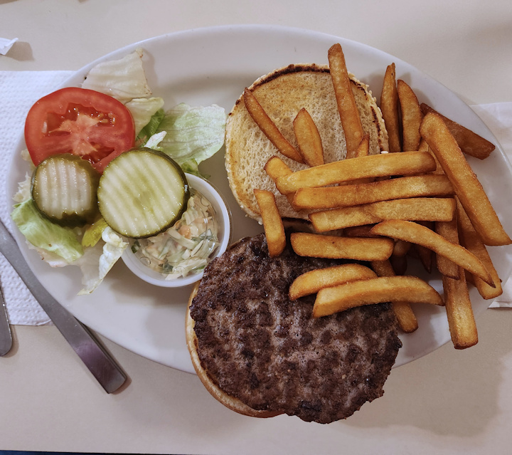 Go back to the wonderful days of yesteryear and you will find a simple clean, aroma filled with delicious meats chicken eggs and diary products. Each order is made fresh right in front of the dining room. Breakfast is bountiful with a wide variety of hearty items and lighter selections, fresh fruit cereal and toast. Lunch is very satisfying with some of the finest hamburgers and hot sandwiches. I love their French fries. Every age group can find a meal that is old fashioned with very reasonable prices. People come here in the morning to meet catch up on current events and consume a homemade feast. Attend!!!!
